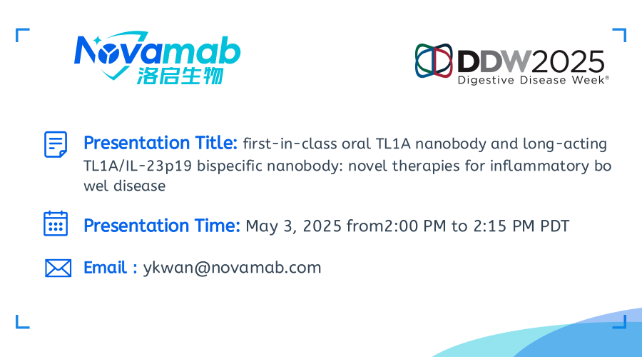 1929cc威尼斯(中国)生物将携口服TL1A纳米抗体及长效TL1A双特异性抗体出席DDW 2025会议