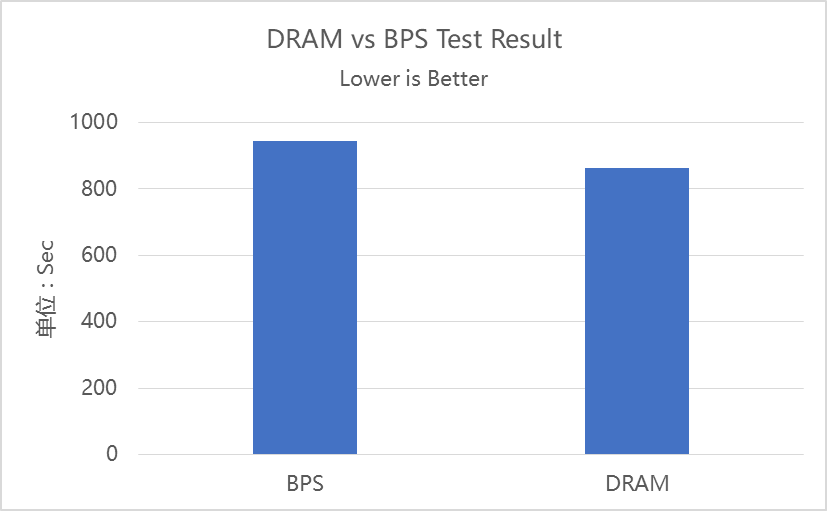BPS MM模式作为内存,较DRAM测试平均用时长约9%,即BPS MM性能是DRAM的91%。