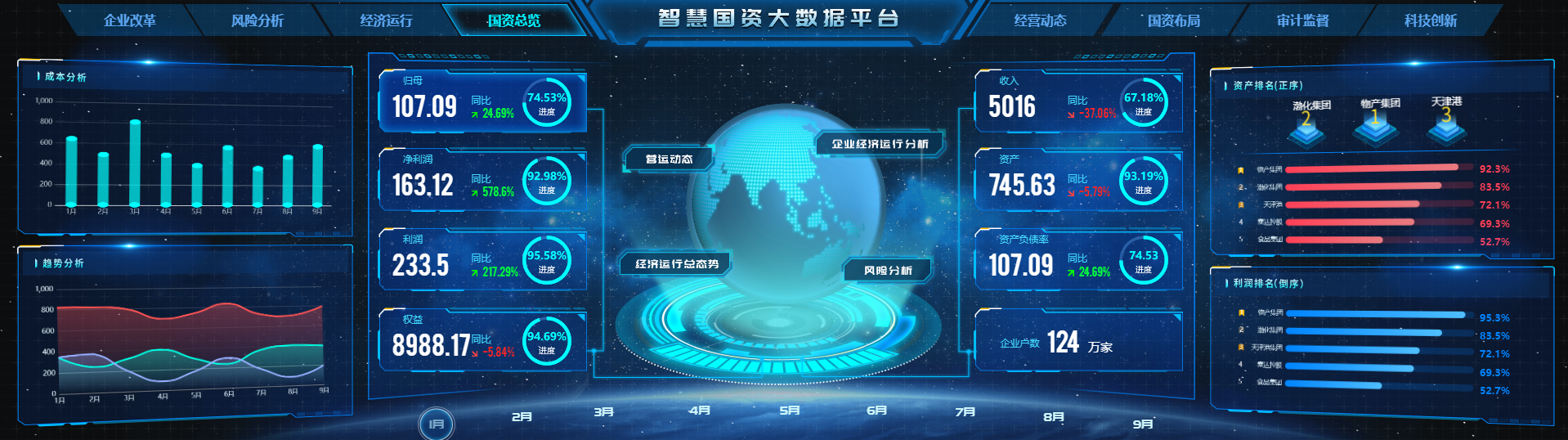 借助金数据大数据分析工具,融合人工智能、机器学习算法,实现智能预警、智能分析报告、指标推衍、市场预测等多种智能应用场景,提升工作效率。同时为领导给予可视化分析看板,支持PC、大屏、移动各类应用,动态监控国有资产运行、风险预警、企业对标等,为辅助领导决策给予有力支撑。