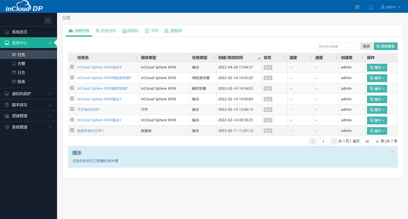 (2)定时增量备份与恢复: 支持主流文件、数据库等备份与恢复。